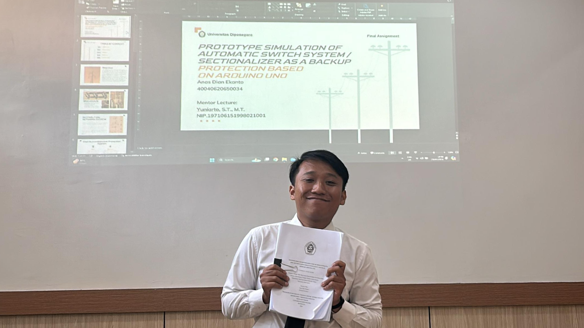 Sidang tugas akhir yang dilaksanakan dengan antusiasme tinggi ini menjadi sebuah langkah besar bagi Anas dalam mewujudkan kontribusi nyata bagi pengembangan teknologi kelistrikan di Indonesia.